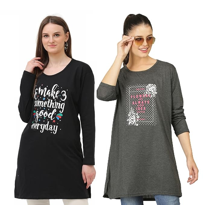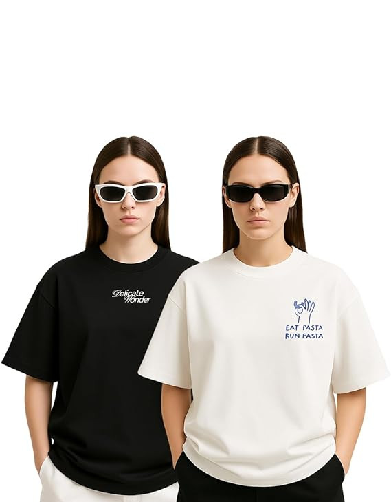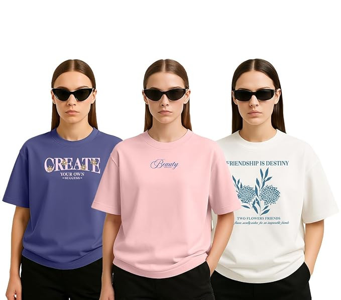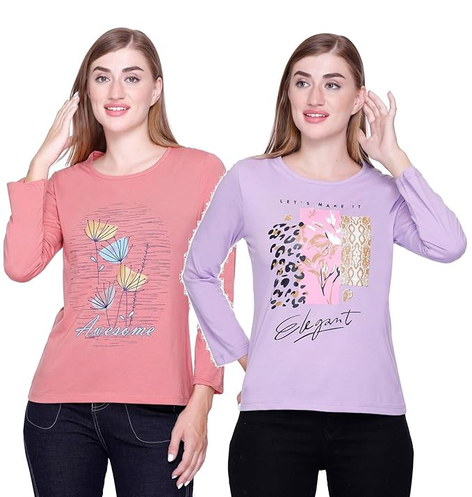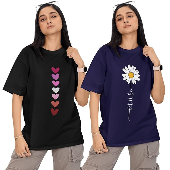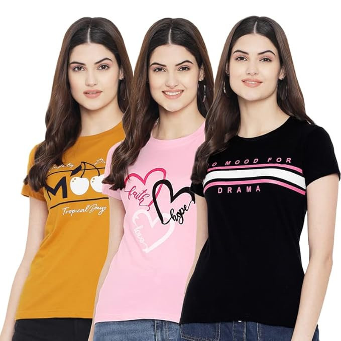 Hangout Hub Family-Friends- Women's Cotton Printed Regular Fit T-Shirts (Pack of 2) Friends