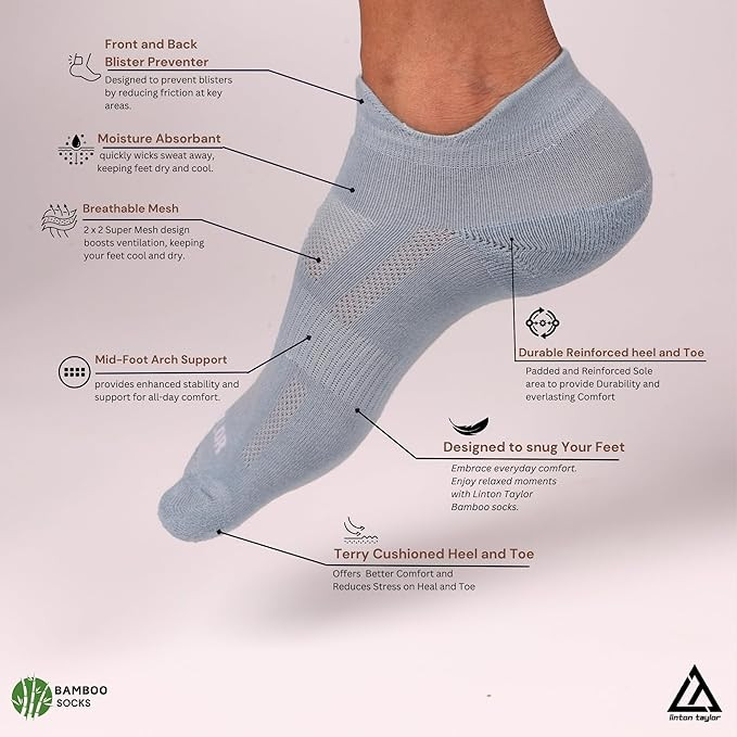 Ultra-Light & Breathable 🌬️ These men socks are designed with breathable bamboo fabric, ensuring maximum airflow. Stay cool and dry during any activities and sports performance. Moisture-Wicking & Odor-Free 💧 Our ankle length socks efficiently wick away moisture, keeping feet sweat-free. Perfect as summer socks and sports socks, ensuring all-day freshness. Second-Skin Comfort 🦶 Designed as ankle socks, they provide a snug, second-skin fit for ultimate comfort. Ideal for workouts and active lifestyles, reducing bulkiness inside shoes. Seamless Toe & Anti-Irritation 🔄 Featuring seamless construction, these bamboo socks prevent blisters and irritation. Ideal for all-day wear, keeping your feet protected. Eco-Friendly & Durable 🌱 Made from renewable bamboo, these socks are biodegradable, reducing environmental impact while offering premium softness and durability.