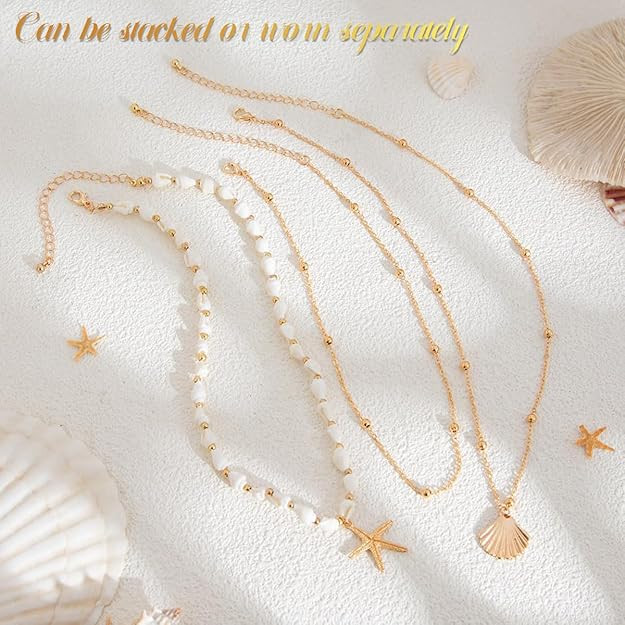 VERSATILE LAYERING OPTIONS: Designed for maximum styling flexibility, beach necklace includes three distinct necklaces that can be worn together for a dramatic, layered look or separately for subtle elegance. Mix and match to complement both casual beachwear and chic vacation ensembles, making it perfect for any occasion.