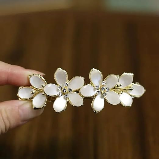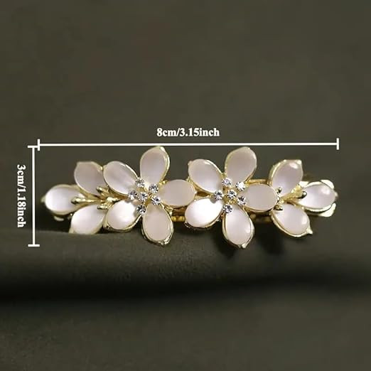 Design: Adorned with meticulously arranged opals, rhinestones, and pearls, these French hair barrettes for women boast a captivating aesthetic. The intricate design showcases artfully arranged elements, such as flowers or bows, enhancing their allure and ensuring they stand out as an eye-catching and sophisticated accessory for various occasions.