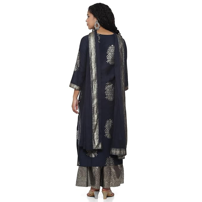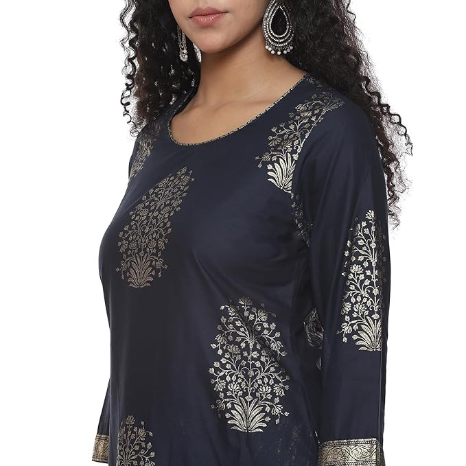 Women Straight Cotton Straight Kurta Palazzo Suit Set