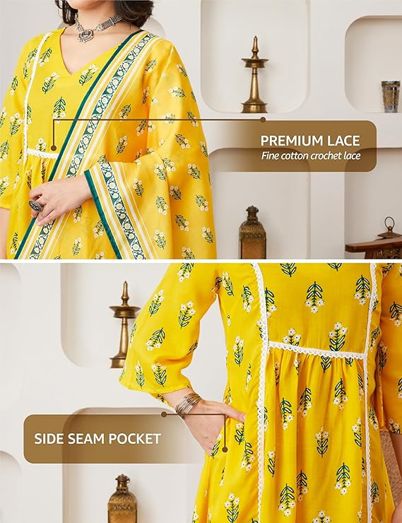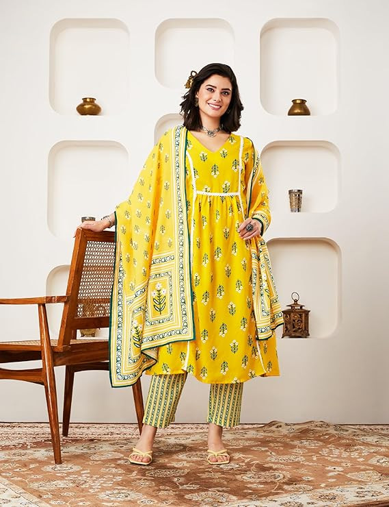Printed A-line Kurta Pant Set with Dupatta