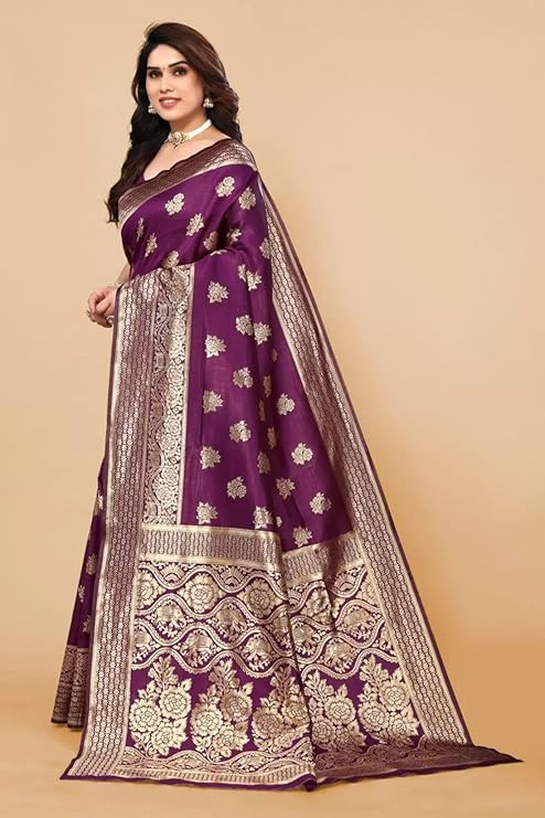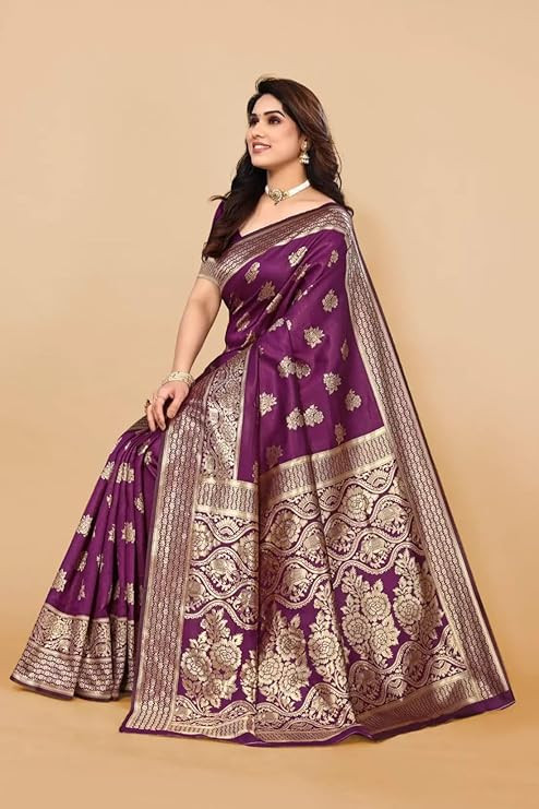 Women's Banarasi Saree Pure Kanjivaram Silk Saree Soft new ladies 2023 Design Wear Pattu Sarees Latest Cotton Party Sari collections With Blouse Piece for Wedding sadi (PARI 63 NEW WINE)