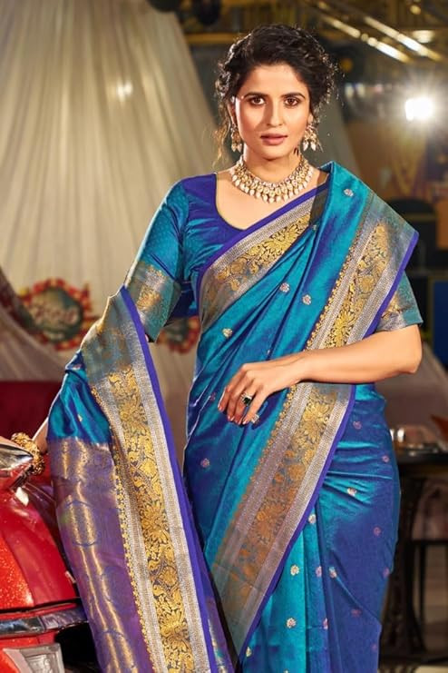 Womens Kanjivaram Silk Saree with Zari Woven Saree With Blouse Piece Gorgeous beautiful color saree is well crafted with high quality Kanjivaram Silk Fabric soft finished, heavy Zari border with Rich pallu, comfortable to wear; artistically woven by our skilled artisans; now flaunt your sophisticated appearance on any special function!