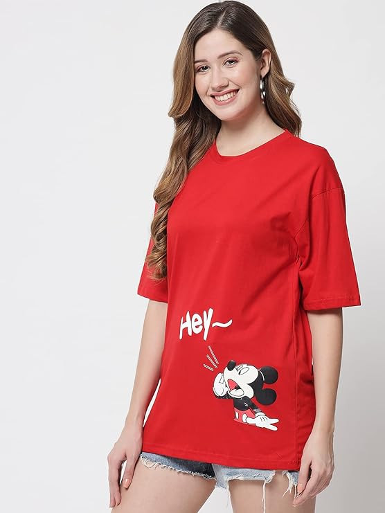 Women's Pure Cotton Casual Oversized Printed Loose T Shirt