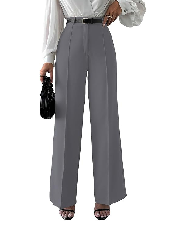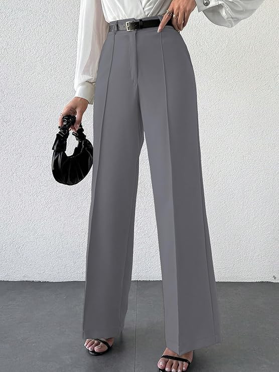 Women's High Rise Solid Color High Waist, Wide Straight-Leg Loose Fit, Front Button Closure, Simple Daily Casual Long Pants with Pockets (Without Belt) (Trouser