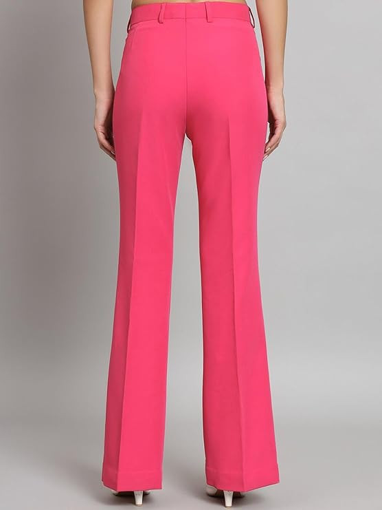 Mid Waist Bell Bottom Stretchable Formal Trouser Pants for Women Office Wear Dress Work Casual for Woman Solid Hot Pink