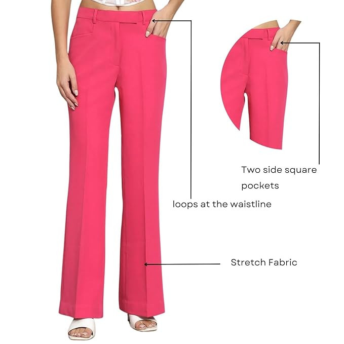 • Premium Quality Fabric: Our women trousers are crafted from premium, breathable textured fabrics, ensuring long lasting durability. These stylish trousers feature a perfect fit, providing a flattering silhouette and all-day comfort.