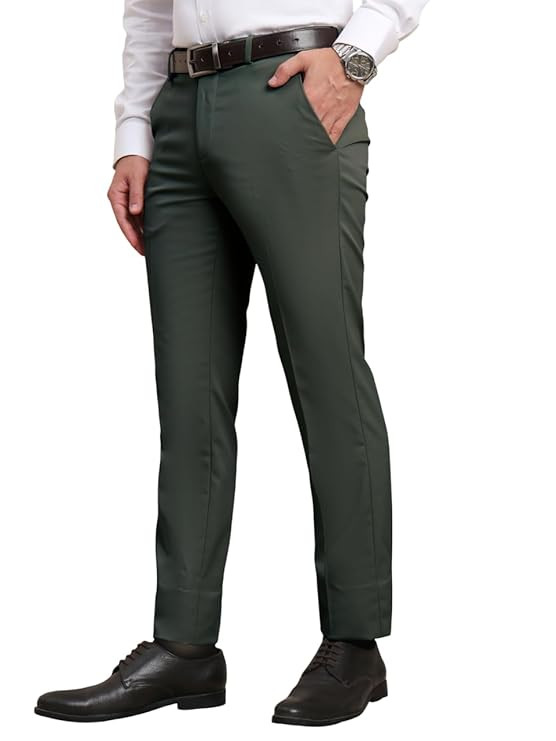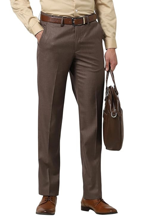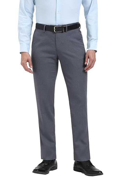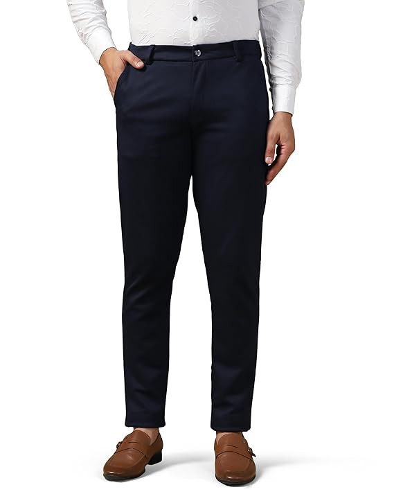 Peter England Men's Slim Fit Mid Rise Premium Formal Stretchable Knit Super Trouser | Comfort Lycra | 360-Degree Stretch